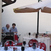 Gioia per gli occhi, godimento per il palato. Aprono le danze i sapori del mare, tartare di salmone e crostino al “nero di seppia”, che anticipa che nulla questa sera sarà lasciato al caso. Nell’aria un profumo di frittura, croccante, di verdure di stagione, di colori impanati. Scaglie di formaggio stagionato guardano ingolosite delle piccole brioches che come degli scrigni nascondono un segreto... impossibile resistere! La degustazione inizia, ma il bello deve ancora venire! Concludono la serata un indimenticabile risotto al “Malanotte” e un tavolo imbandito di frutta fresca. Ricordi di vino e d’estate riassunti in questo finale.