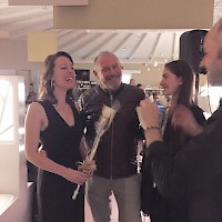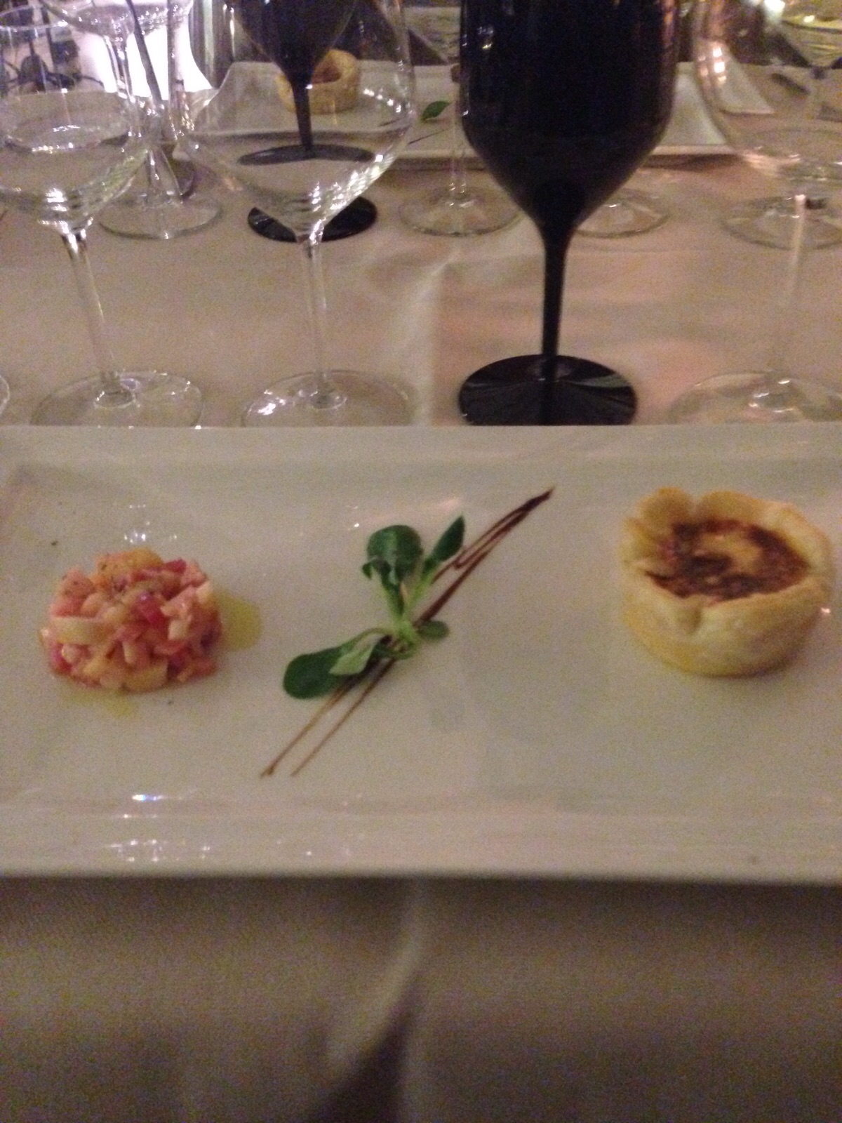 Lo chef Alberto Gozzo questa sera ha deciso di stupirci con raffinate proposte culinarie, che incorniciano i vini in modo impeccabile e che preannunciano le festività natalizie ormai imminenti. Ogni piatto è lo scorcio di un paesaggio da gustare: verdure, legumi e frutti invernali dove il vino fa ogni tanto capolino. E dopo aver gustato e sorseggiato con un sottofondo musicale en pendant, diventa davvero difficile decidere a quale senso prestare attenzione. Nessun pensiero. Pure sensazioni.
