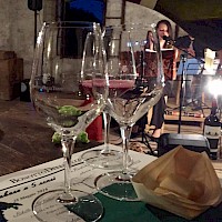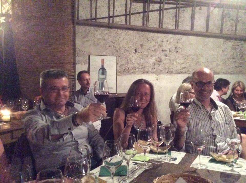 La famiglia Bonotto ci accoglie con calore e cortesia: un sorriso, un bicchiere di Raboso rosato frizzante e dei vassoi colmi di crostini con le primizie dell’orto prima che salga il sipario. Poche semplici cose per accompagnare il vino che questa sera, con la storia, è il protagonista indiscusso: delle barchette di formaggi delle latterie locali per tener testa al Potestà e al Malanotte. E’ un piacere capire che questo è un vino che invita al cibo e alla convivialità! Eh sì, il Raboso metterà anche appetito, ma quando arriviamo al passito sembra di avere nel bicchiere tutto ciò che si desidera. E poi una splendida biscotteria secca chiude la scena con eleganza. Chi lo ha detto che la semplicità ha un sapore meno intenso??